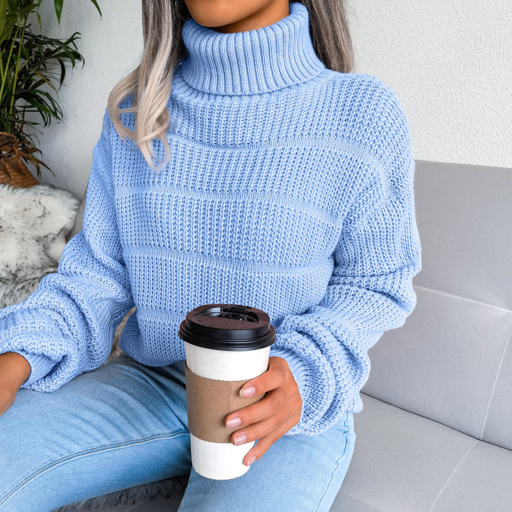 Women Turtleneck Long Sleeve Hollow Out Base Knit Sweater