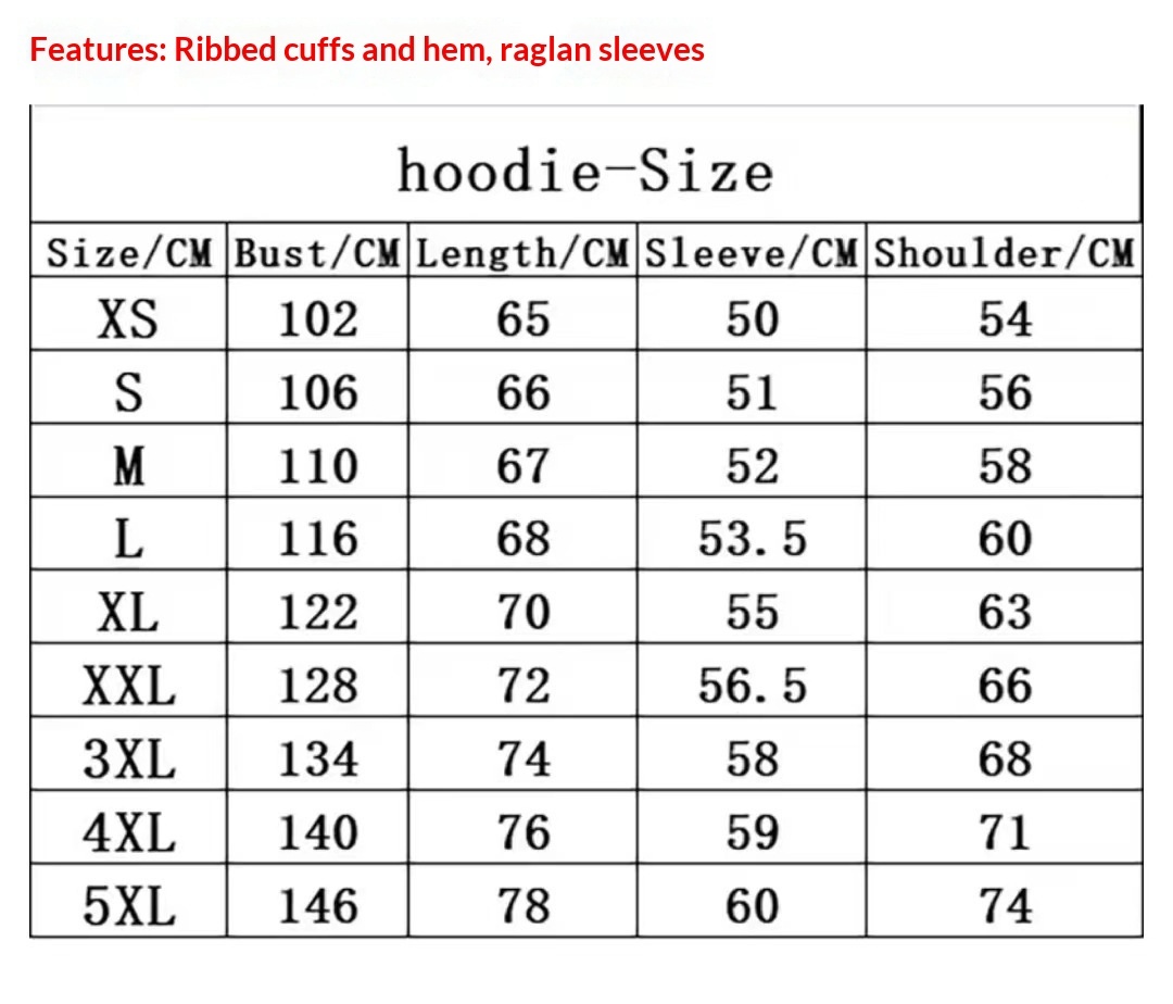 Sizes: XS, S, M, L, XL, XXL, XXXL, 4XL, 5XL